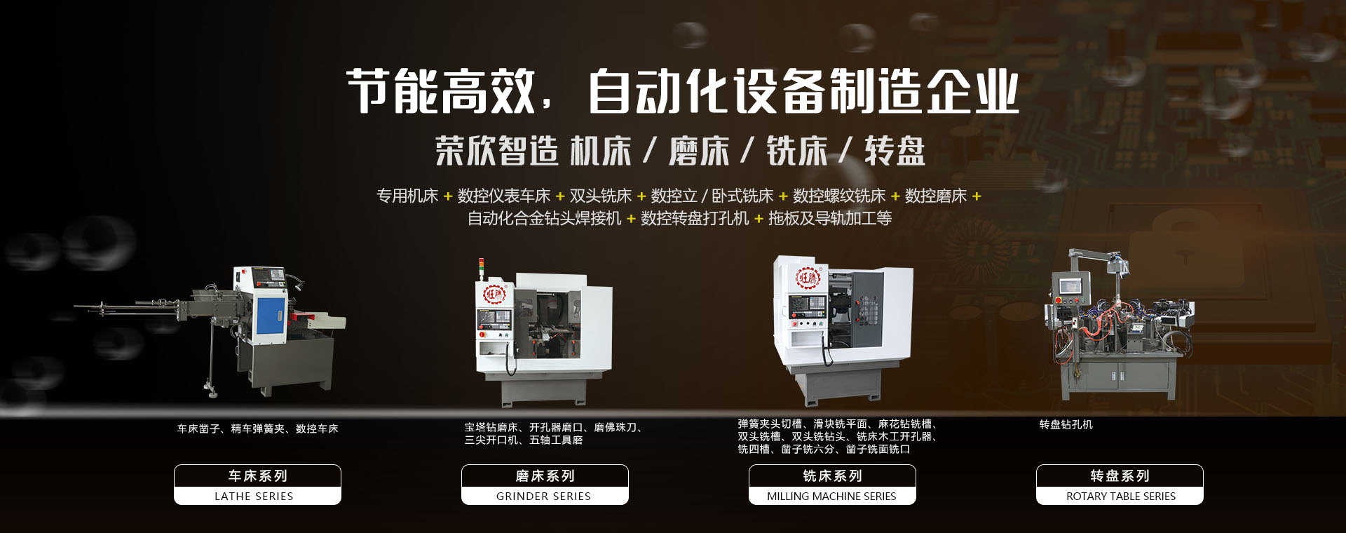 樂清市榮欣機械有限公司專業(yè)生產(chǎn)各類專用機床、數(shù)控儀表車床、雙頭銑床、數(shù)控立/臥式銑床、數(shù)控螺紋銑床、數(shù)控磨床、自動化合金鉆頭焊接機、數(shù)控轉(zhuǎn)盤打孔機、拖板及導軌加工等系列多種規(guī)格產(chǎn)品,竭誠歡迎海內(nèi)外客戶,誠邀廣大技術(shù)型人才加入!Yueqing Rongxin Machinery Co.,…